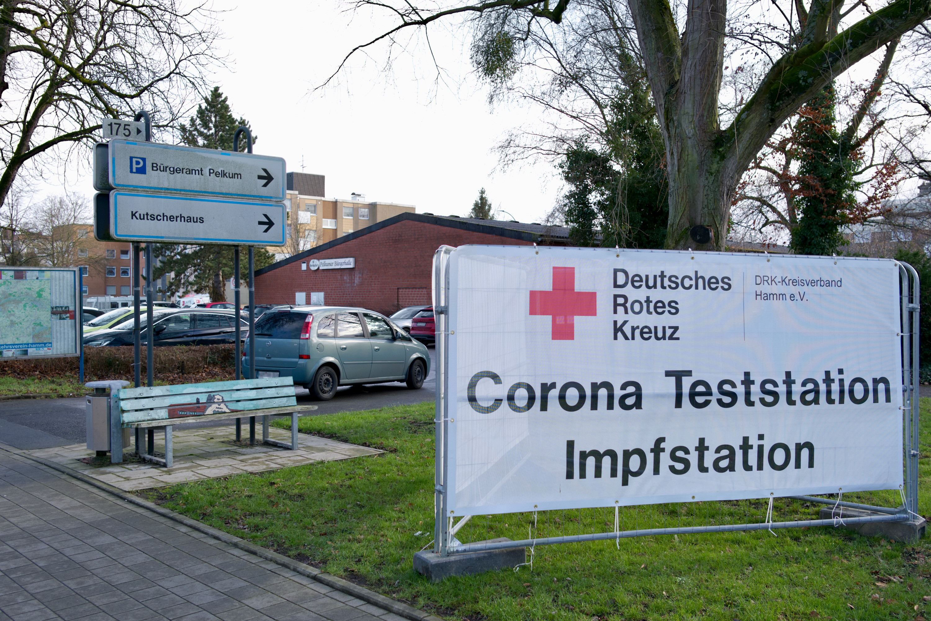 RaWen (Diskussion | Beiträge) DRK Corona-Impfzentrum und Teststelle in der Bürgerhalle Pelkum. Aufnahme am 20.01.2022 durch HammWiki-Benutzer RaWen. |