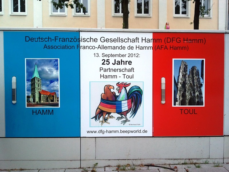| 19:23, 18. Sep. 2012 | Blickfang MI008.jpg (Datei) | 128 KB | {{Bild-CC |Motiv=Blickfang MI008<br>Motiv: 25 Jahre Städtepartnerschaft zwischen Toul (F) und Hamm<br> Standort: Platz der Deutschen Einheit |Fotograf=Thomas Neuhaus |Aufnahmedatum=18.09.2012 |Freigabe:ab Veröffentlichung für HammWiki }} [[Kategor | 1 |