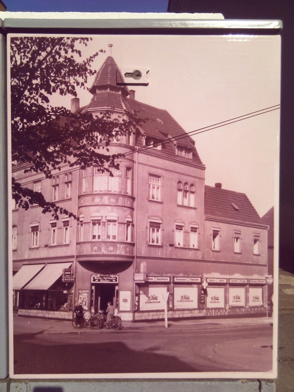 | 20:10, 30. Sep. 2012 | Blickfang PE009.jpg (Datei) | 126 KB | {{Bild-CC |Motiv=Blickfang PE009<br>Motiv:Eckhaus Fangstraße / Kamener Straße mit Geschäft "Wein und Spirituosen W. Nieder", historische Aufnahme<br> Standort: Fangstraße |Fotograf=Felix Schulte |Aufnahmedatum=30.09.2012 |Freigabe:ab Veröffentlic | 1 | |