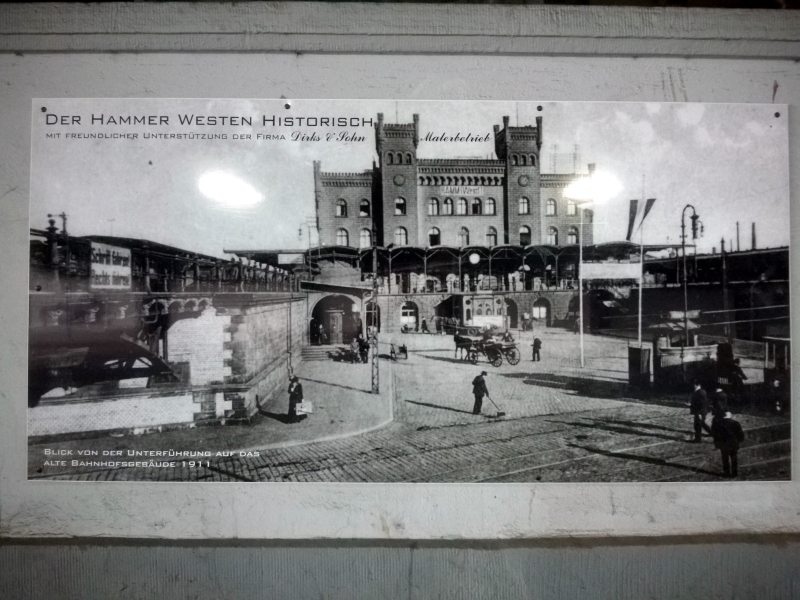 | 20:35, 23. Mär. 2014 | Blickfang MI503.jpg (Datei) | 377 KB | {{Bild-CC |Motiv=Blickfang MI503<br>Motiv:Galerieprojekt "Der Hammer Westen historisch", ''Blick von der Unterführung auf das alte Bahnhofsgebäude 1911'', historische Aufnahme<br> Standort: Wilhelmstraße, Bahnunterführung Westeinfahrt, Nordseite, | 1 | |