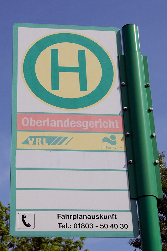 Haltestellenschild Oberlandesgericht, photografiert am 26.4.2009 von Frank-Th. Bonnemeyer