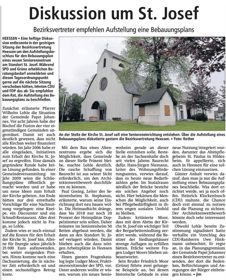 | aktuell | 17:54, 29. Jan. 2014 | 741 × 918 (253 KB) | MyRegioGuide (Diskussion | Beiträge) | {{Bild-WA |Motiv=Diskussion um St. Josef |Redakteur=jim |Fotograf=Rother |Aufnahmedatum= |VÖ=9. Mai 2012 |Leserbrief= }} Kategorie:Presseartikel |