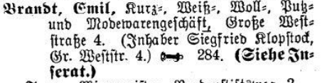 - (Herunterladen) 1903 Weststr 4 Brandt.png . . 460 × 117 . . 52 KB . . Schulte . . 19:34, 31. Okt. 2024